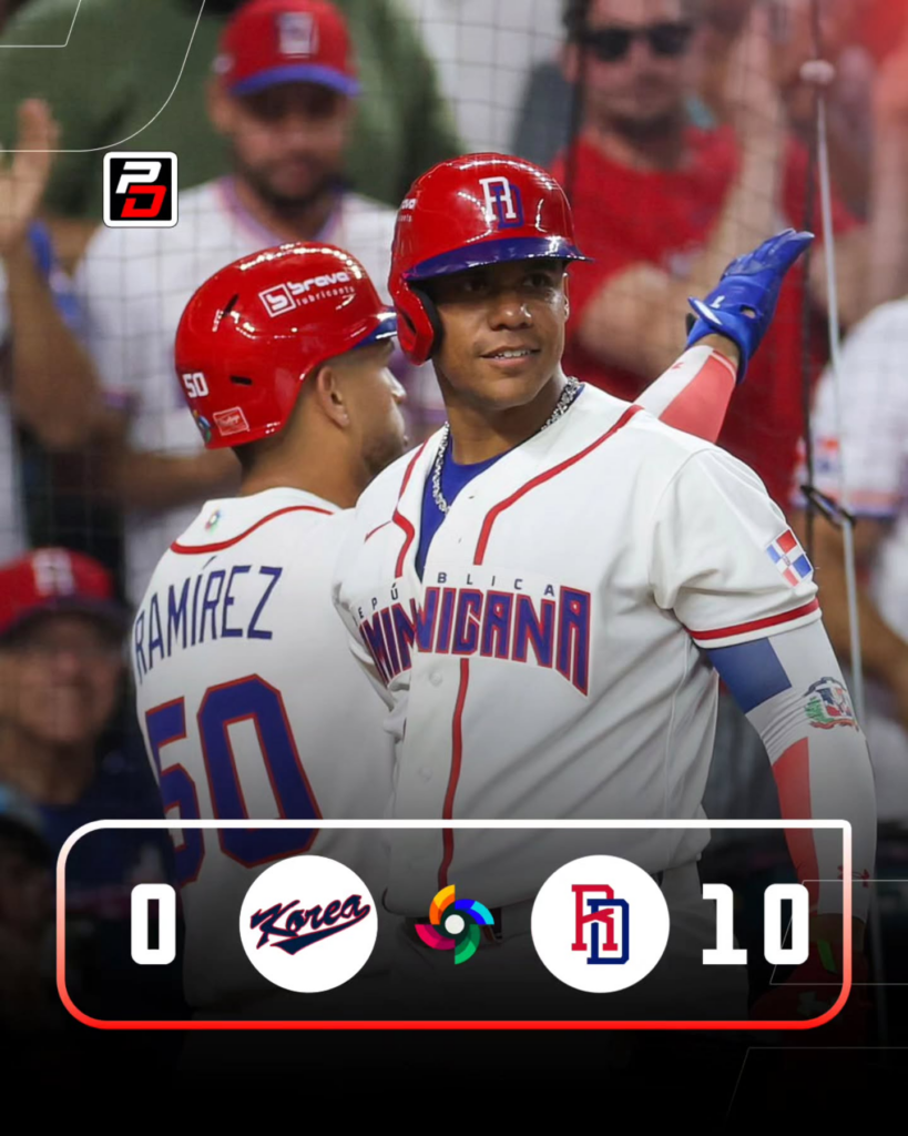 La selección dominicana demostró todo su poder ofensivo al derrotar 10-0 a Corea del Sur en los cuartos de final del Clásico Mundial de Béisbol 2026, en el loanDepot Park de Miami.