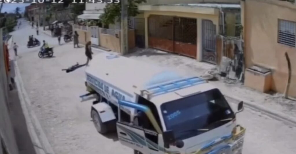 De acuerdo con las grabaciones de cámaras de seguridad, la adolescente corría por la vía cuando perdió el equilibrio y cayó al pavimento, siendo impactada por la parte trasera de un camión distribuidor de agua que transitaba por el lugar.